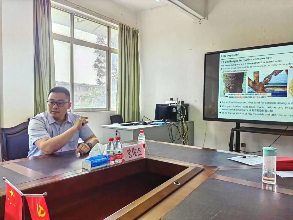 2023年6月15日下午,广东工业大学曾俊杰教授应邀在土木与工程管理公司三楼会议室做了题为《FRP增强UHPC海工结构研发及应用》的学术报告。