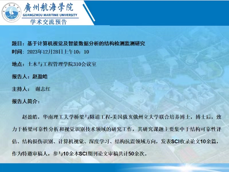 红山土木博士论坛第11期预告——赵盈皓博士《基于计算机视觉及智能数据分析的结构检测监测研究》