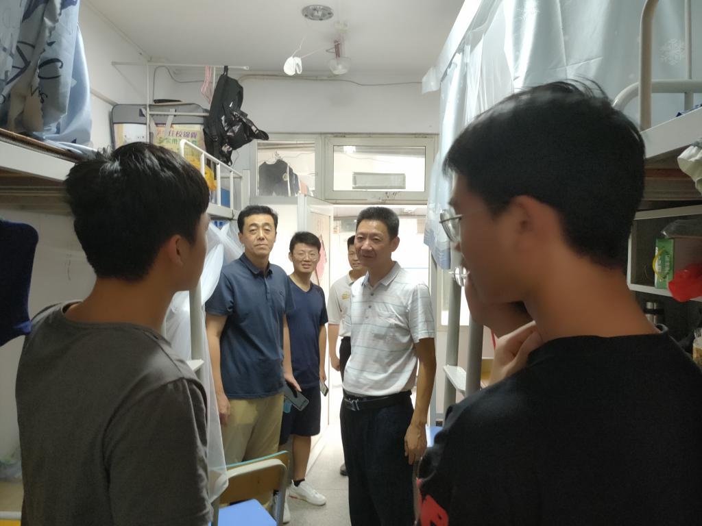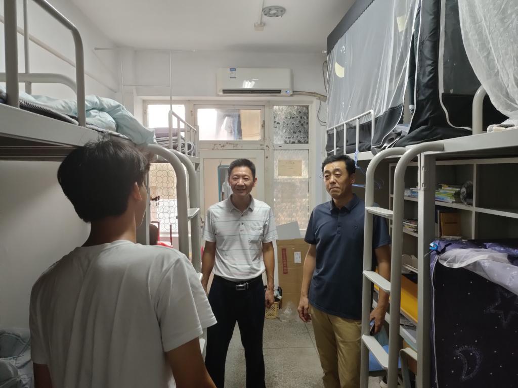 刘书记等一行来到南区宿舍,对同学们致以节日的问候,并关切地询问了员工们假期学习和生活情况;同时叮嘱假期留校同学做好疫情防控,做好宿舍卫生,适度体育锻炼,保持规律作息,不沉迷网络游戏,常与老师同学亲友联系,确保个人身心健康。