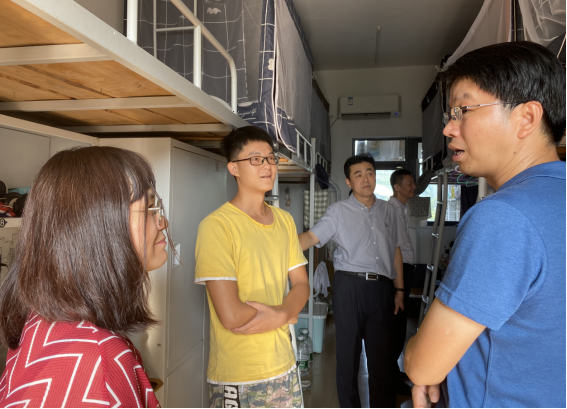 走访过程中,首先查看了员工的宿舍卫生条件,并要求大家做好日常体温监测和个人防护,勤洗手、勤通风,坚持晨检制度,一旦有发热等异常要立即上报。叮嘱同学们努力学习,认真复习备考,严格遵守考风考纪。张经理对员工的学业规划进行了指导,鼓励大家树立更高的学习目标,向考研的方向努力拼搏,不断提升自己。刘书记关心询问了员工在生活和学习上存在的问题,提醒并指导大家学会处理防疫和学习、生活的关系,合理安排自己的老员工活。