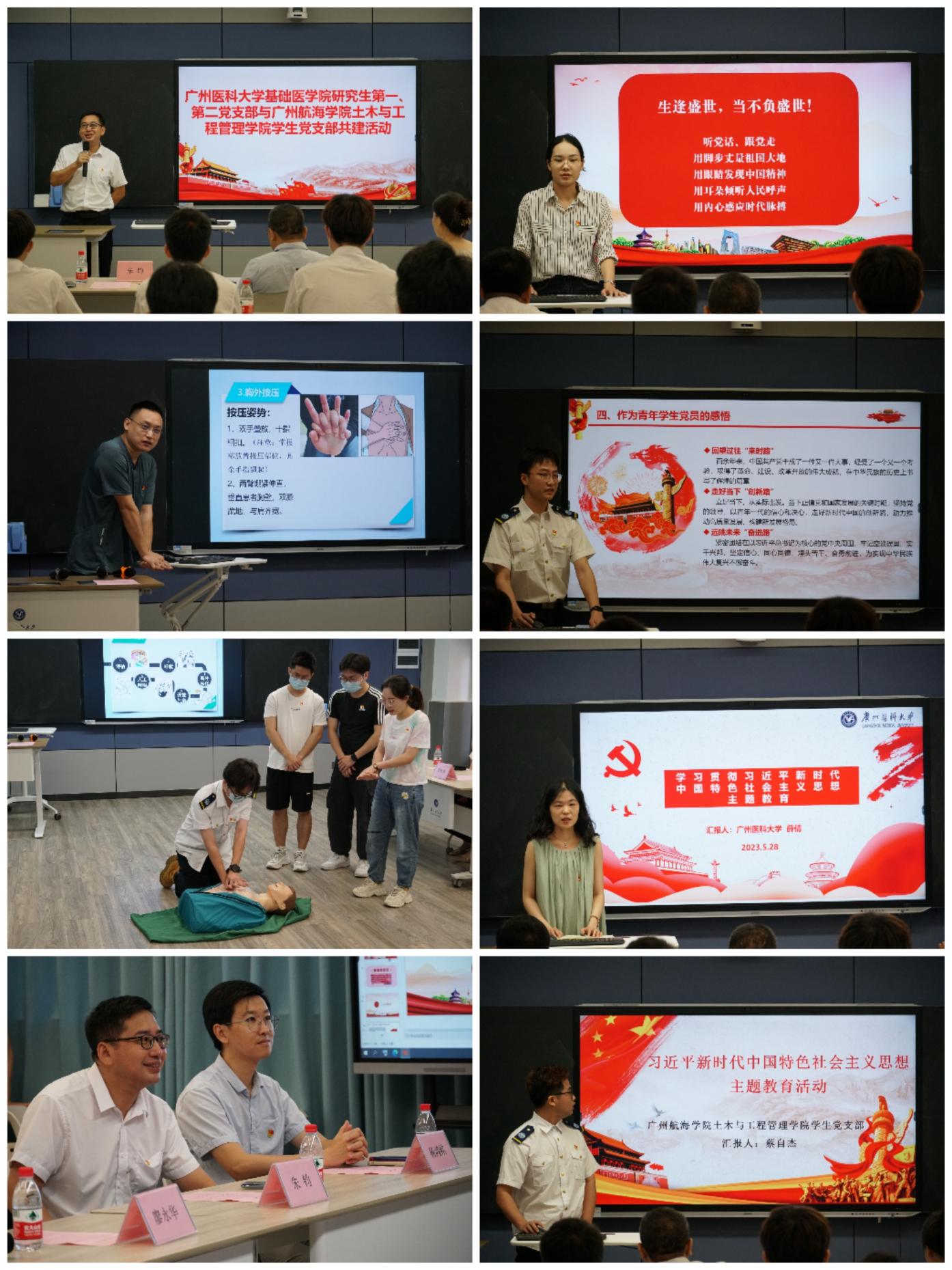 活动开始,廖永华老师与朱钧副书记分别介绍了本校最新的动态、各自党支部党建工作和业务工作的基本情况,分享了党建工作经验做法。双方表示,要在今后支部活动以及支部建设方面搭建共享平台,加强联系与合作,促进员工党支部党建工作提质增效。随后,双方围绕党的二十大报告学习、学习贯彻习近平新时代中国特色社会主义思想主题教育等内容分别派出2名党员代表上台进行学习心得分享,并交流了双方支部建设的特色做法与工作成效。心得分享环节结束后,广州医科大学的党员代表进行CPR心肺复苏的具体操作流程以及操作细节的讲解,并做了现场模型操作示范,之后多名员工党员上台进行实操学习。交流会最后大家前往了广州医科大学解剖楼参观了人体标本馆。