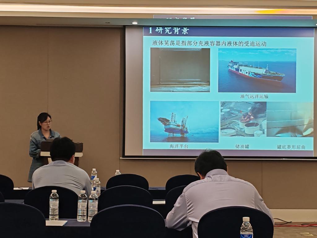 鲍树峰教授以最近在《岩土工程学报》上刊发论文为基础,代表团队发表了题为《疏浚吹填泥沙静态间歇沉降行为及其稳态宏观评价标准》的主题报告,针对该类地基真空预压加固期间存在的排水系统严重淤堵问题、加固效果不可控的问题进行了深入地剖析,并提出了具体解决办法;于立婷博士发表了题为《水平或垂直激励下格栅隔板减晃作用的试验研究》的主题报告,重点介绍了垂直开孔隔板对水平和垂直激励下的液体晃荡现象的影响和有关隔板减晃机制的新发现。