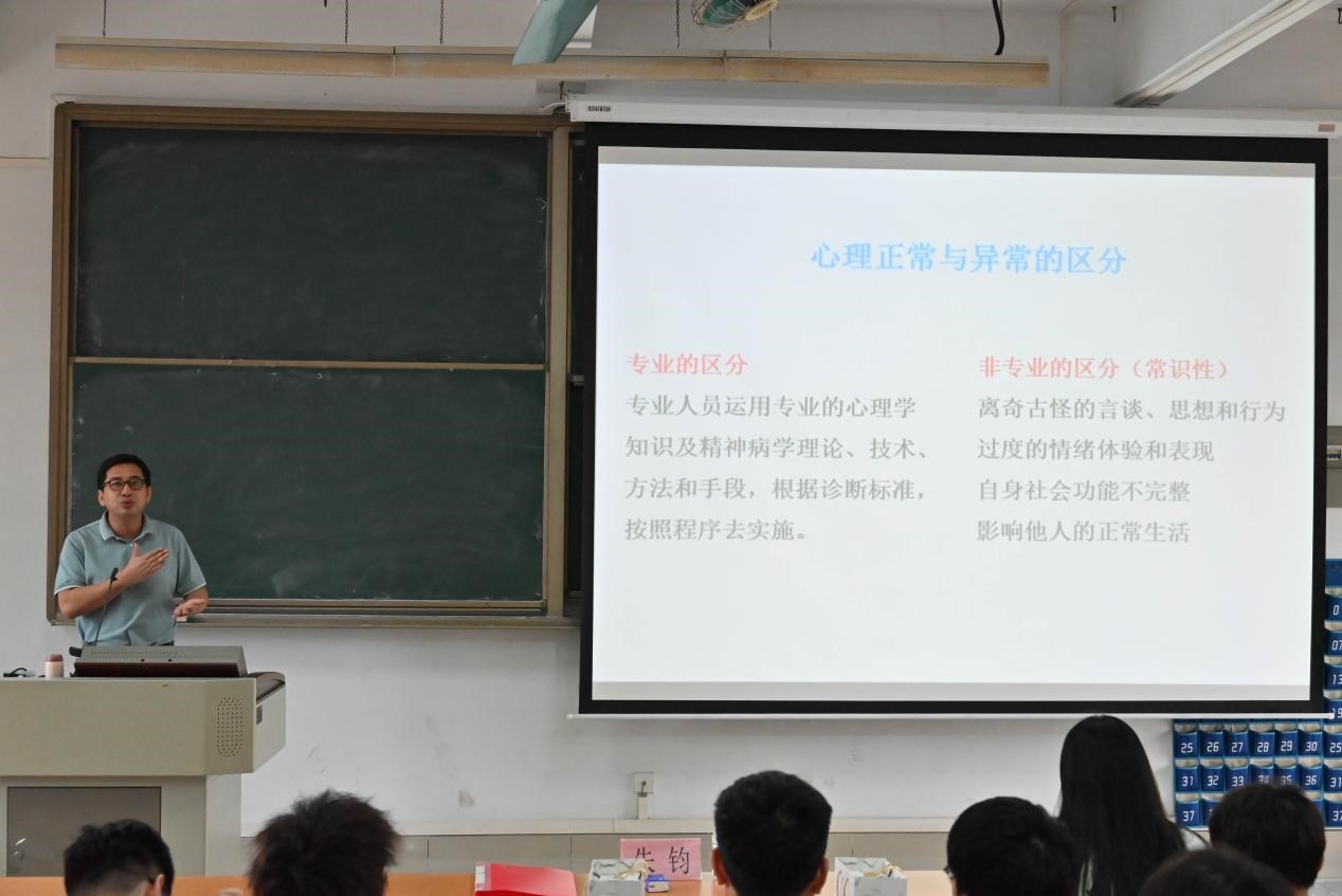 他详细讲解了极端心理行为与如何正确干预的相关内容。他从极端心理行为的原因、表现以及预防措施等方面进行了全面阐述,并强调了接纳和关爱心理疾病患者的重要性。他提醒大家,面对有极端行为倾向的同学,要保持冷静、耐心倾听以及接纳他们,不对其做任何评判,让他们相信别人是可以给予其帮助的,并鼓励他们寻求他人的帮助和支持。