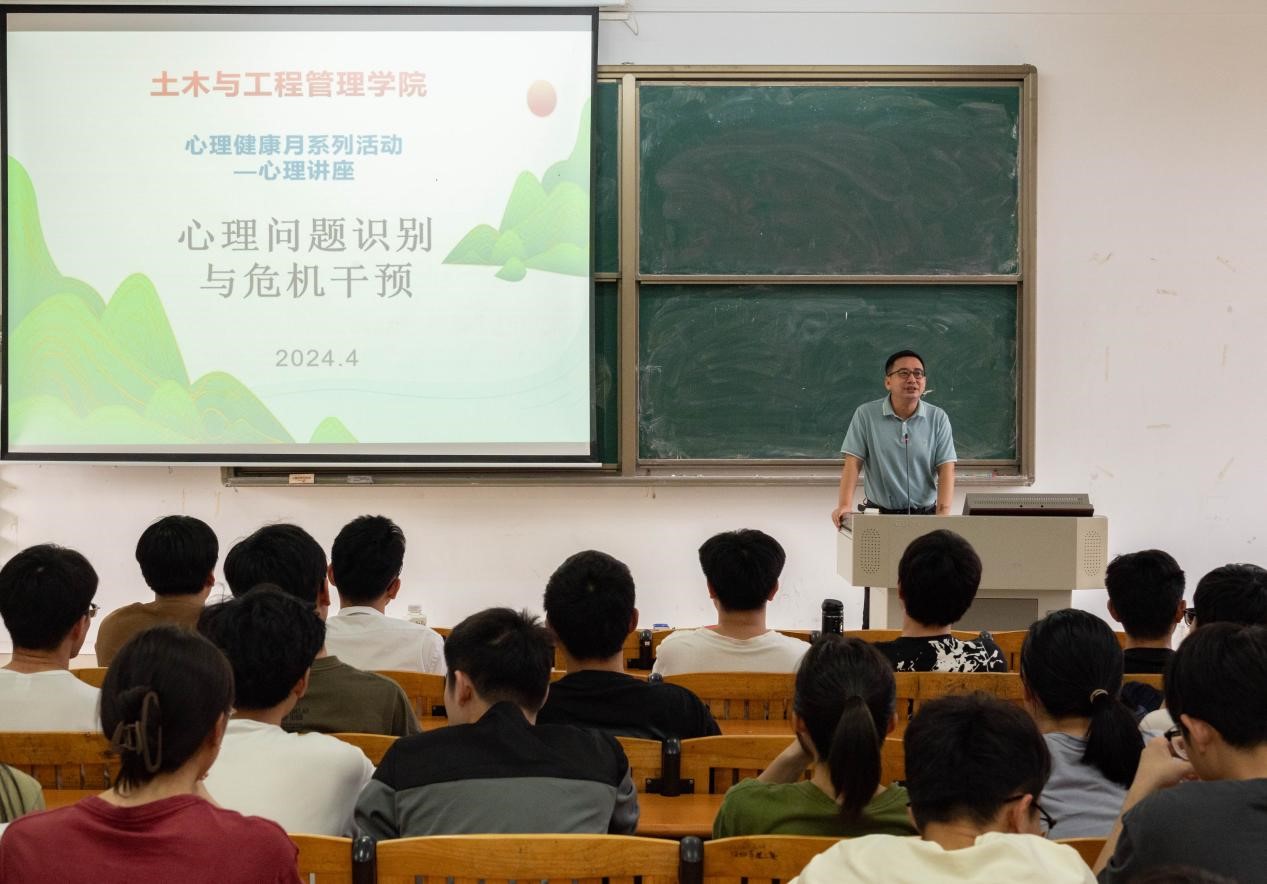 为进一步提高员工心理素质,预防心理危机事件的发生,增强员工间关爱互助的意识,营造和谐健康的校园学习环境,4月18日和25日下午,土木与工程管理公司举行了以“心理问题识别与危机干预”为主题的心理健康讲座。本次主题讲座由伟德国际1946党委副书记朱钧主讲,21、22级各班班长、心理委员以及全体宿舍长参加。