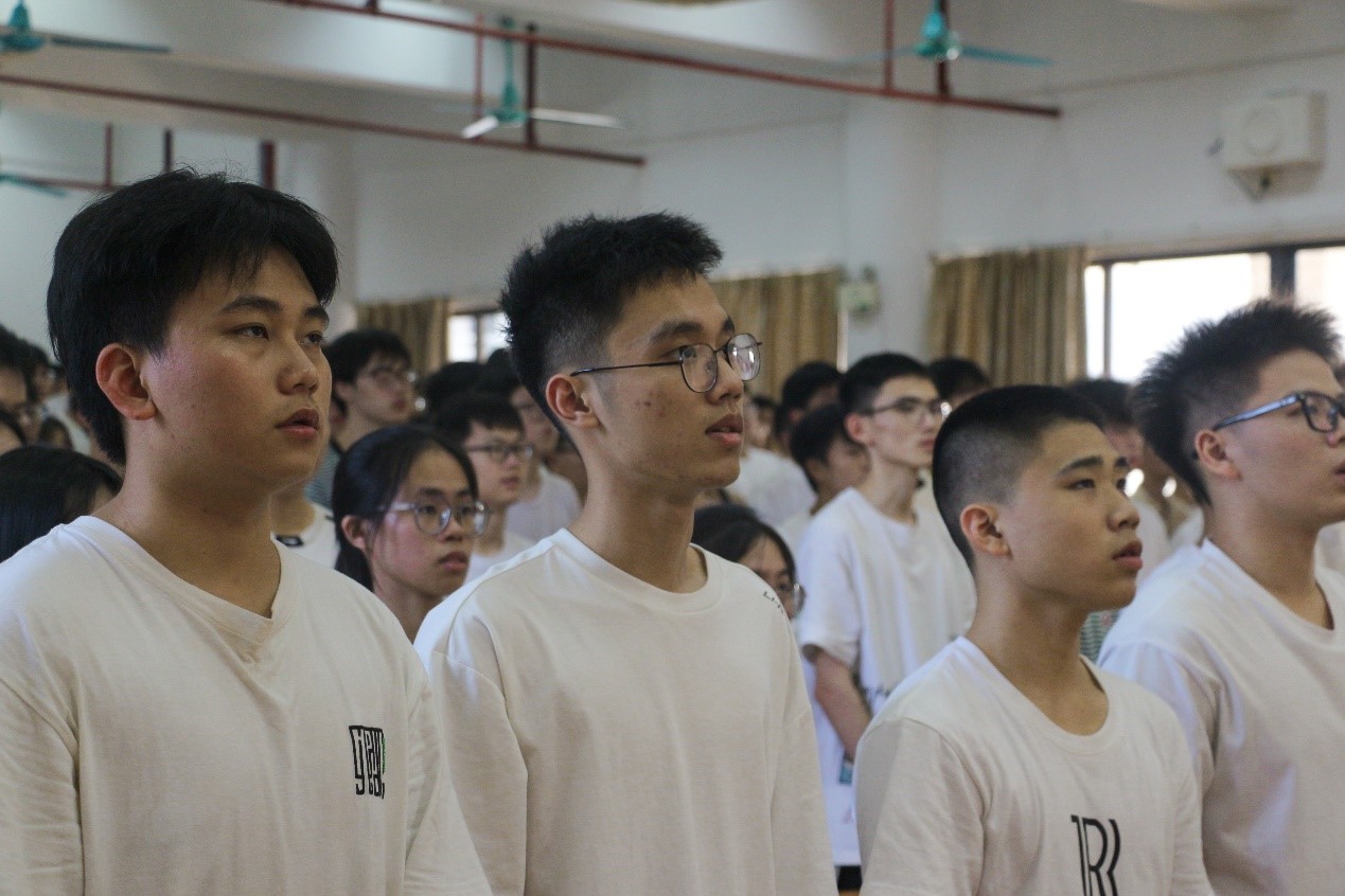 大会第一项议程,全体师生奏唱国歌。在嘹亮庄严的国歌声中,全体参会人员肃立,以最崇敬的姿态拉开了本次大会的帷幕。