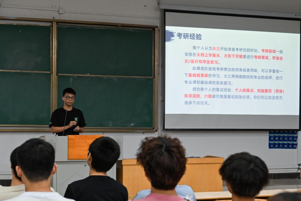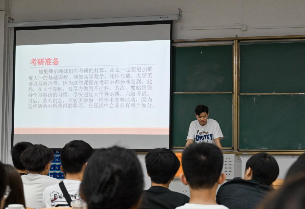 紧接着,同为土木201的钟俊国员工,以其扎实的专业基础和丰富的校园经历,为新生们树立了榜样。他详细阐述了如何通过课堂学习、课后复习及实践项目相结合的方式,夯实专业基础,确保知识的系统性和完整性。同时,他还分享了如何利用课余时间参与社团、志愿服务等活动,丰富自己的校园履历,提升综合素质。在谈及考研经历时,他用亲身经历告诉新生们,坚持与努力是通往成功的必经之路,而正确的方法和策略则能让这段旅程更加顺畅。
