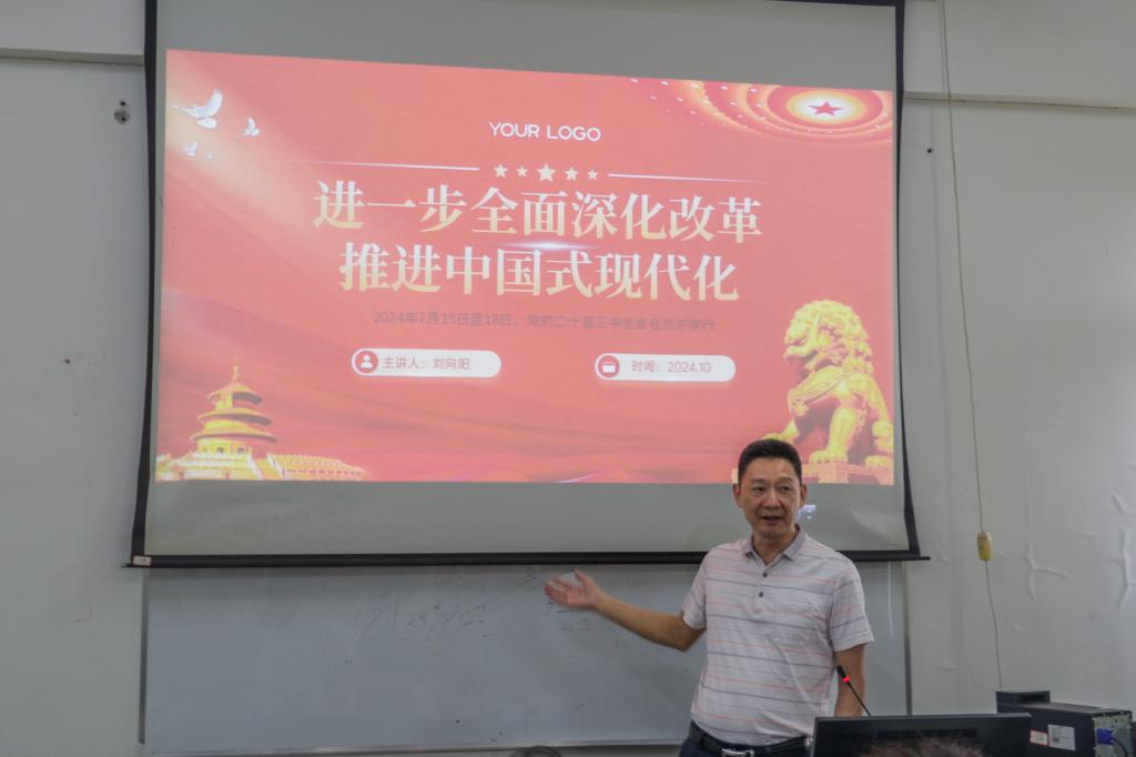刘书记首先回顾了党的二十届三中全会概况,带领大家认真学习了党的二十届三中全会的主要内容,讲述了新时代以来全面深化改革取得的重大成就,并结合最新时政热点,强调要坚持党的领导,贯彻新发展理念。随后,他阐述了进一步全面深化改革的意义、总目标、七个“聚焦”以及需要遵循的重大原则。最后,刘书记指出,24级新生要做好未来的发展规划,鼓励员工砥砺前行,为国家百年目标而奋斗!