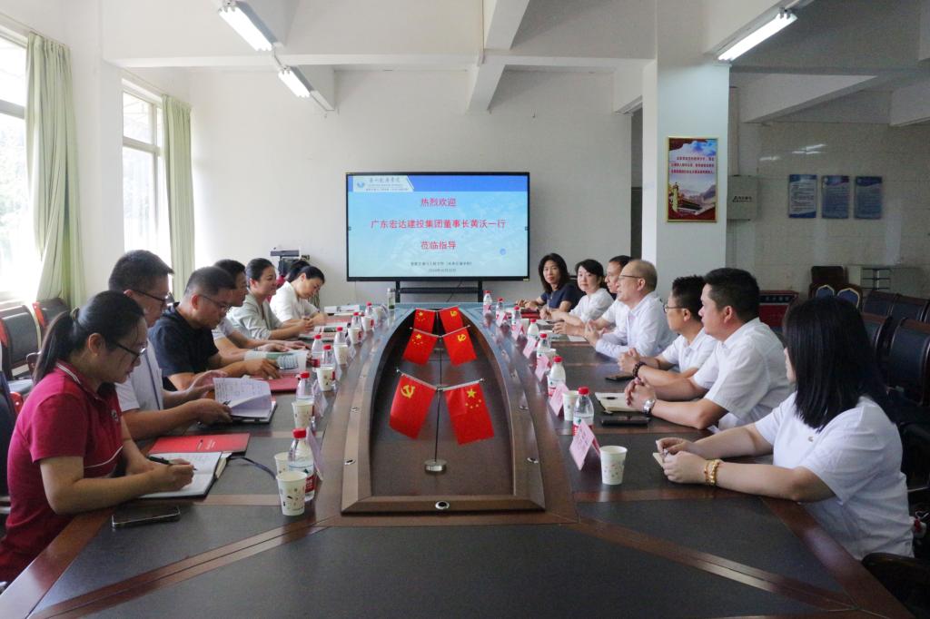随后,基建后勤管理部部长马亦农介绍了公司校园建设情况,并表示,希望贵公司能参与到广州交通大学的建设中。接着,员工工作部部长郑苗谈到,感谢黄沃董事长等公司领导对我们公司的关心和支持,希望以后加强联系和沟通。