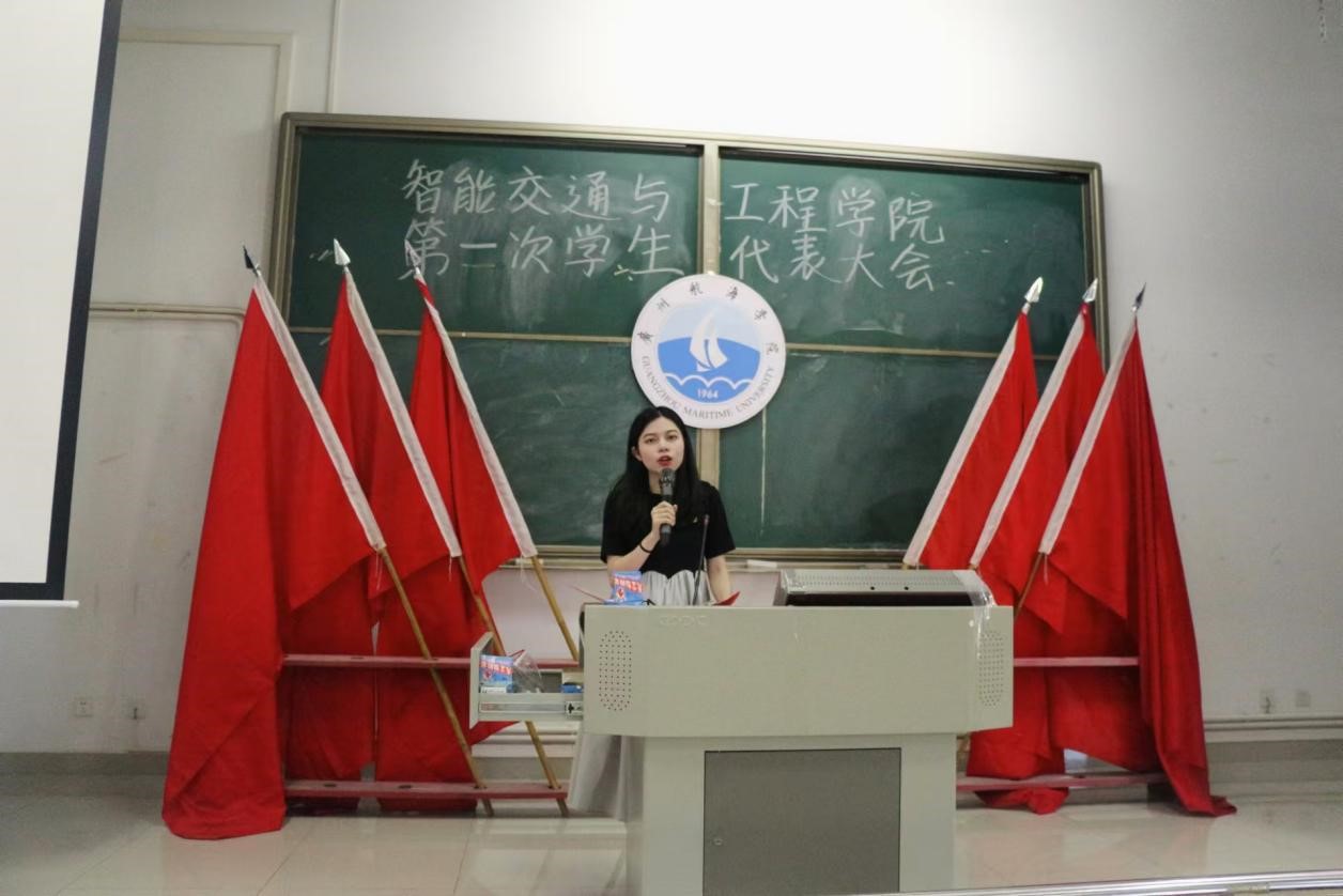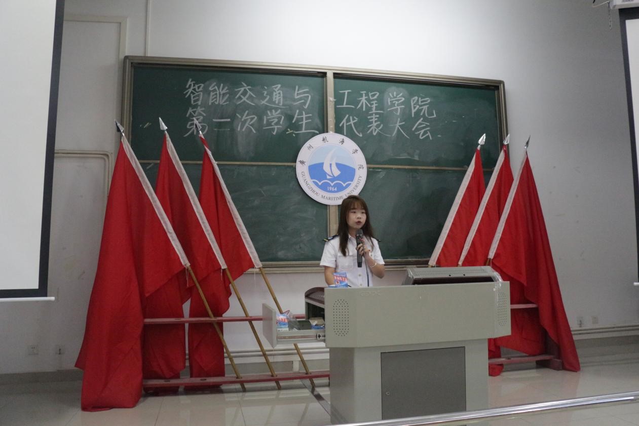 校员工会代表黄颖颖发言,她提出新一届的员工会干部要强化党团性,发挥榜样作用,提升自身能力,全心全意为同学们服务。她祝愿交通公司新一届员工会干部秉承校训精神,继往开来,共同努力,创造辉煌成就。