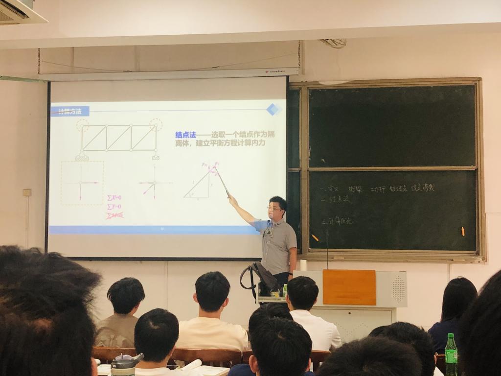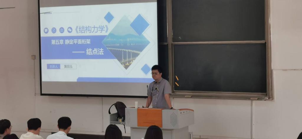 黄昆泓博士的课程教学设计完整、脉络清晰,内容丰富,课件精心打磨,图表动画生动明了,知识点讲解透彻。在讲授结点法计算桁架内力等相关内容时,以工程案例导入,能够理论联系工程实际,深入浅出,自然融入课程思政,充分利用课堂派等网络资源增加师生互动,教学与育人并重,教学效果良好,为师生呈现了别开生面的一堂课。