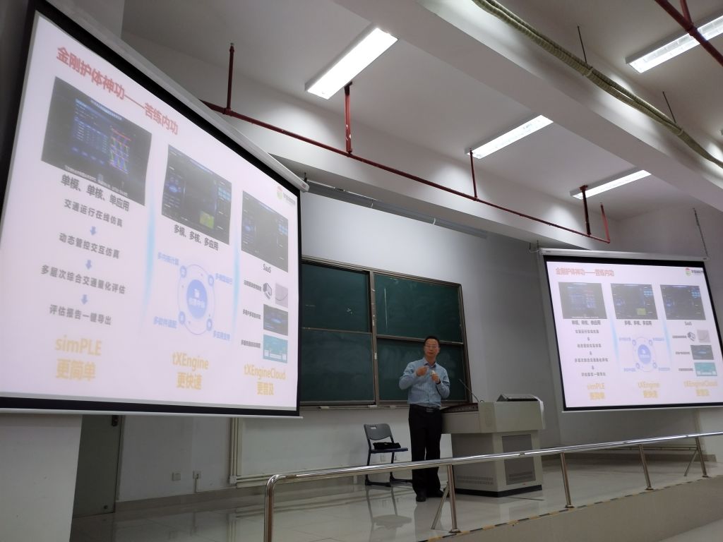 随后,沈总深入讲解了微观交通仿真技术在智能交通管理中的应用。他强调,随着智能交通管理的智能化发展,公司人才培养应紧跟智能建造趋势。找准定位,赢得发展先机。他指出,市场上许多交通仿真技术外观华丽,但在模型精确度和数据分析上存在不足。他将提升模型精准度和数据分析能力作为创业的核心竞争力,告诉同学们在创业准备阶段要善于发现新兴领域机遇或挖掘现有领域空白,构建独特竞争优势。