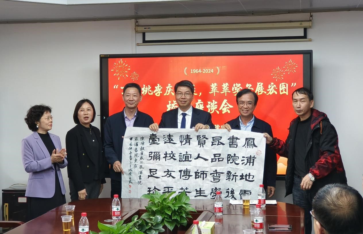 座谈会中,广东省书法家协会副主席陈春盛、来自福建的82级员工陈燎毅为凤浦书院献上自己的墨宝和诗集,并祝愿母校教育事业更上一层。
