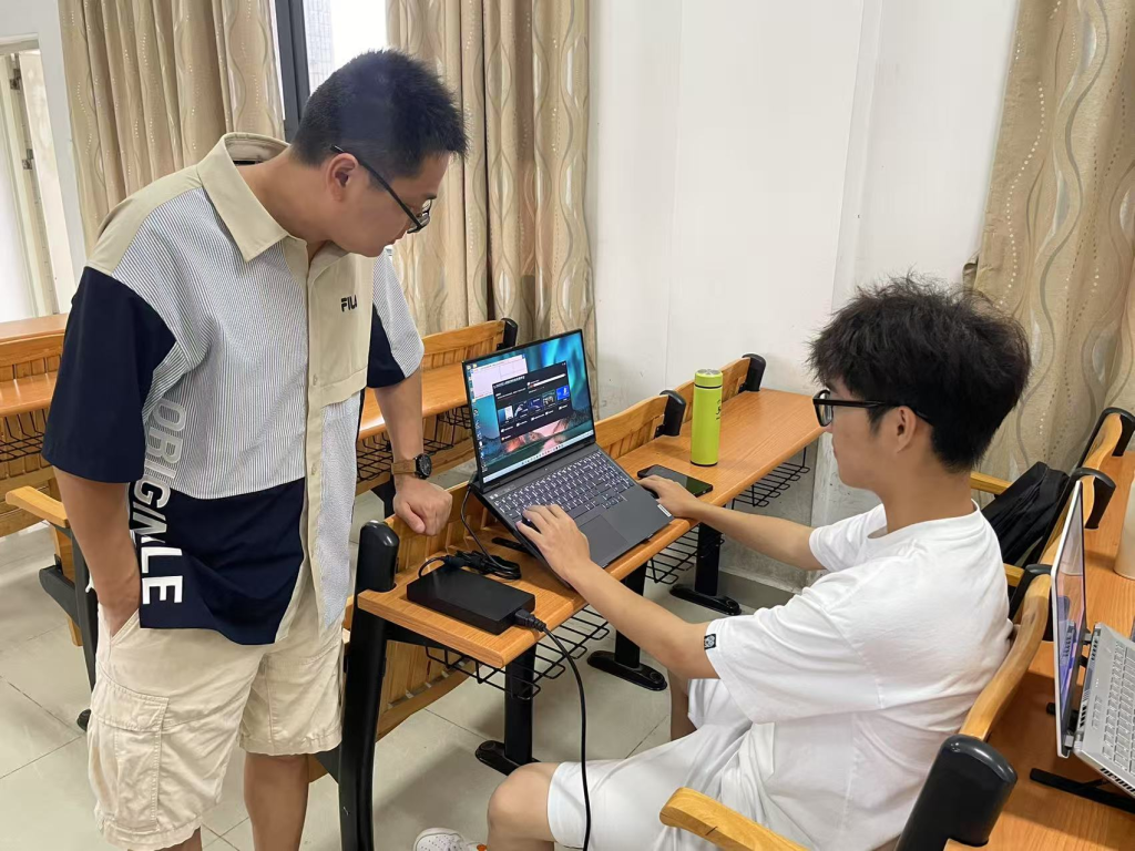 张子文老师与余子珑同学讨论实操方案