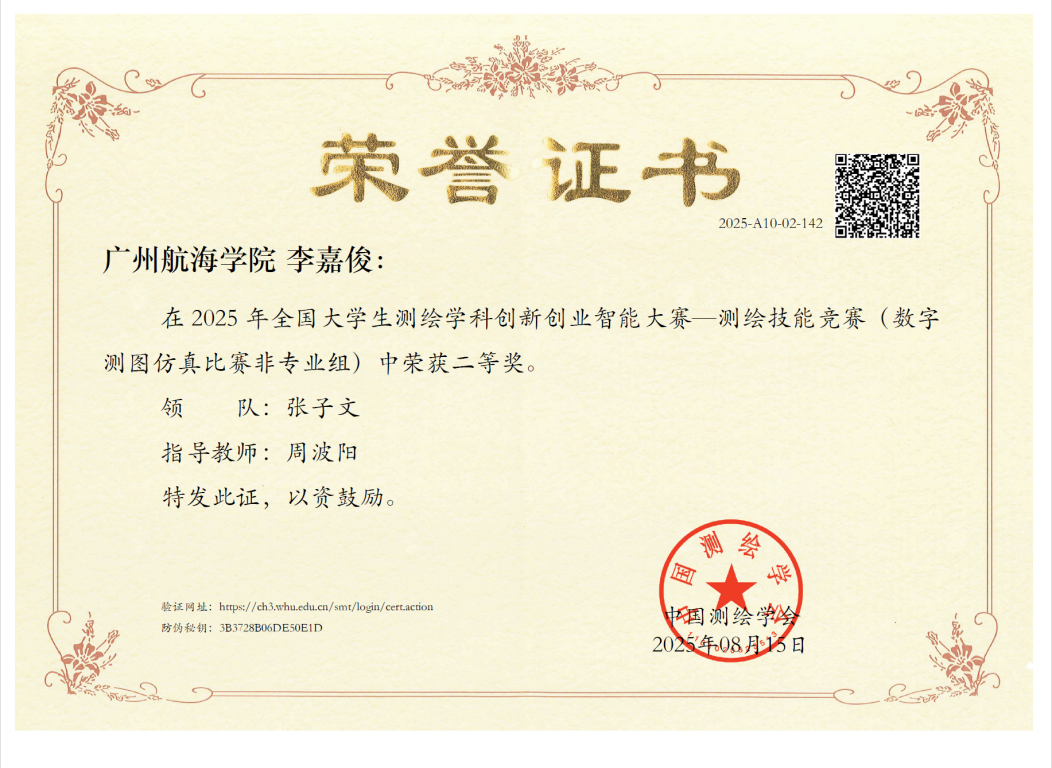 本次优异成绩,是公司坚持“以赛促学、以赛促教”教育理念的成果体现。通过参与高水平学科竞赛,员工们不断提升实践与创新能力,为今后服务国家测绘事业、智能交通事业发展夯实基础。未来,公司将继续鼓励广大学子积极参与各类学科竞赛,全面提升人才培养质量,为测绘科技进步贡献青春力量!