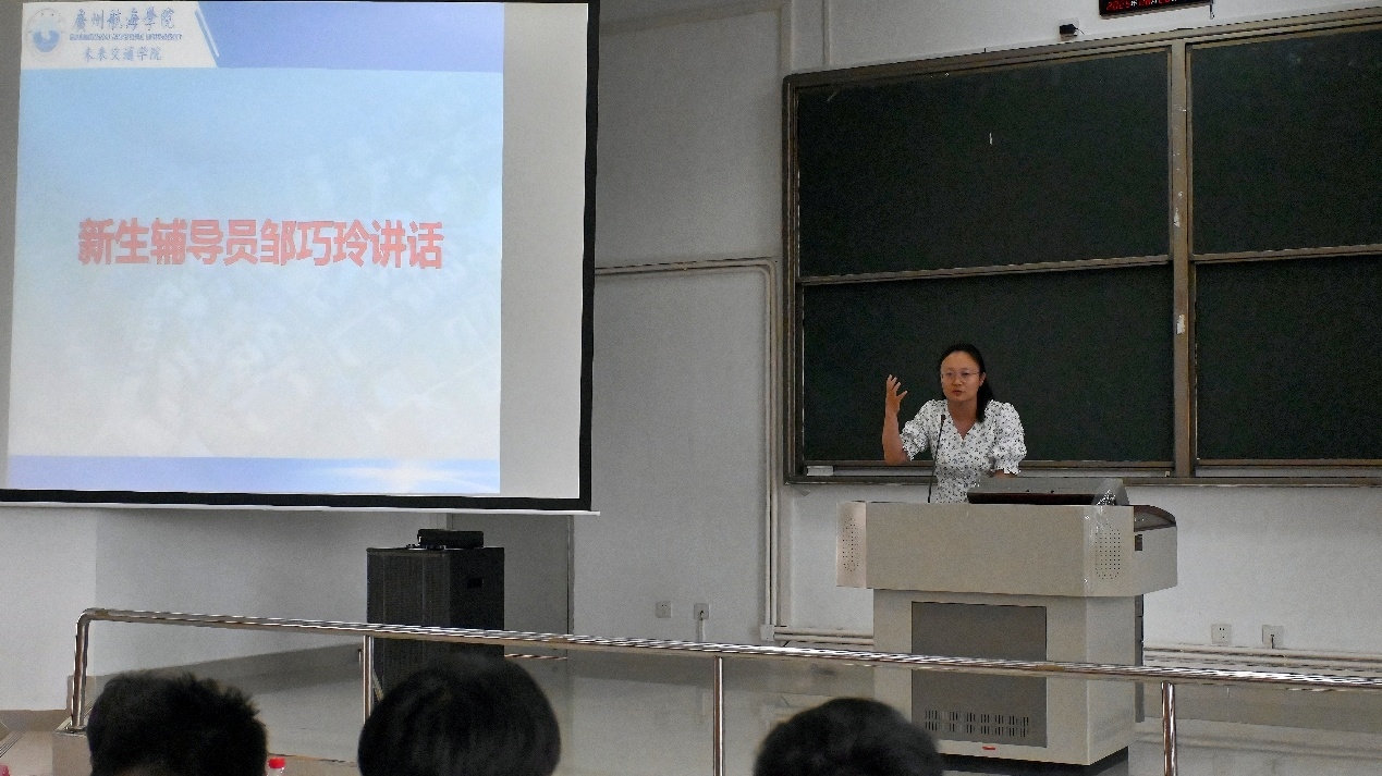 接着,由新生辅导员邹巧玲发言。她对工作人员提出了几点要求,一是多与老师、同学沟通,细致了解工作内容;二是增强团队协作精神,凝聚合力;三是保持良好状态,准时到位并完成前期工作准备,为迎新服务工作打牢基础。