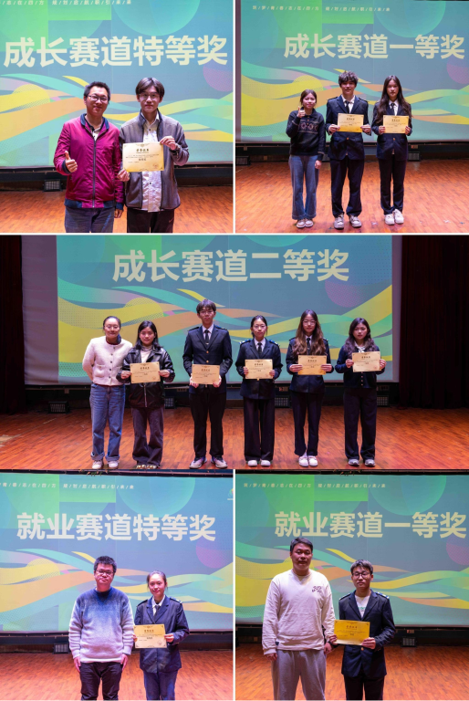 比赛经过评委们的认真评审,最终评选出了“成长赛道”和“就业赛道”的一、二、三等奖以及特等奖。