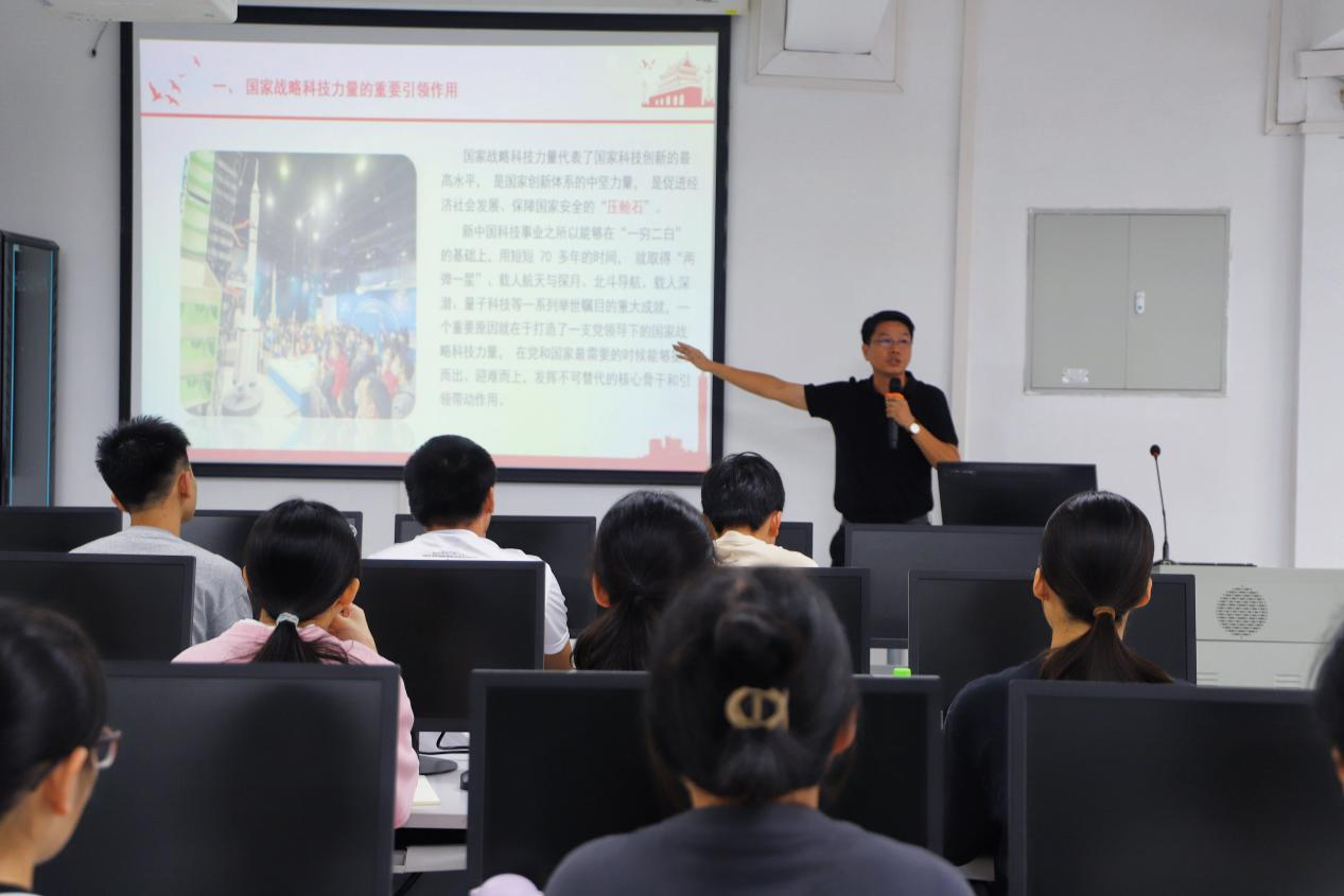 刘向阳书记带领同学们回顾了党的二十大报告中关于“坚持创新在我国现代化建设全局中的核心地位,加快实现高水平科技自立自强,加快建设科技强国”等内容。他以新中国科技事业的案例为切入点,展现了我国在科技力量“一穷二白”的基础上打造了一支党领导下的国家战略科技力量,已跻身创新型国家行列,引导同学们感悟国家的发展、强盛。刘书记教导青年员工要持之以恒深入学习贯彻习近平新时代中国特色社会主义思想,深入学习宣传贯彻党的二十大精神,与习近平总书记对青年的重要讲话精神结合起来,学好用好。同时提醒同学们不仅要注重书本知识的学习,而且需要培养创新意识,积极融入全面建设社会主义现代化国家、建设海洋强国、交通强国的新征程。