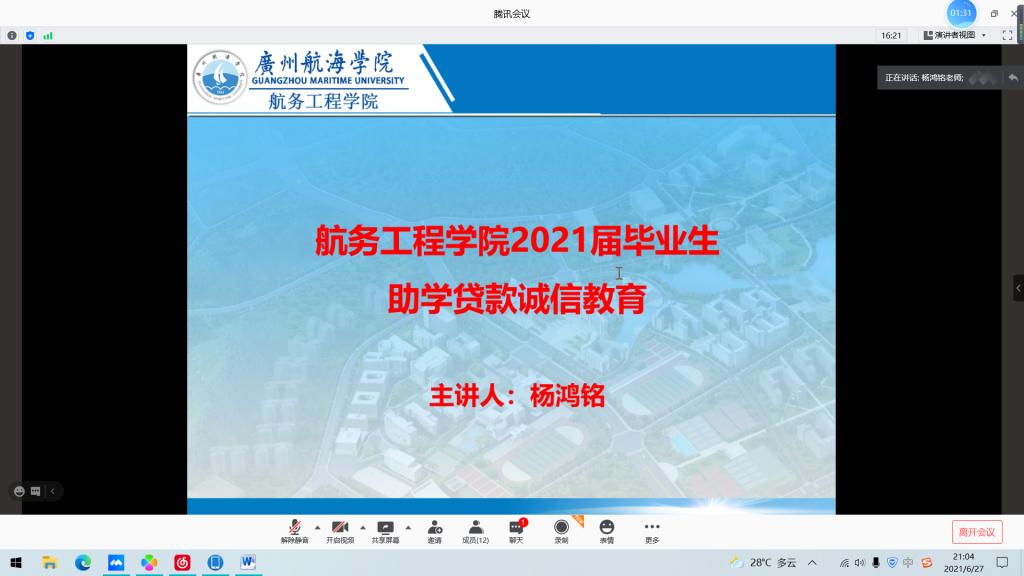 为不断塑造老员工的诚信与感恩品质,进一步推进老员工思想政治教育工作,促进各项资助政策的充分宣传和有效落实,2021年6月27日晚,公司负责员工资助工作的杨鸿铭老师在腾讯会议召开了2021届毕业生助学贷款诚信教育会议,毕业班助学贷款的同学参加了此次会议。