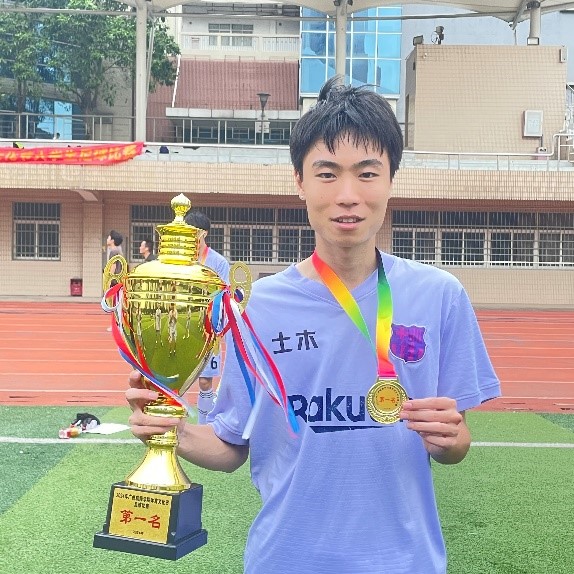 第一次作为队长参加院赛,很感谢队友对我的包容和支持,这让我在这个位置上充满了动力。很高兴能在足球场上看到队友们拼搏、坚持的身影,这个冠军是全队努力的成果。在比赛中,我们学会了如何面对困难、如何坚持不懈、如何与队友相互信任。这些宝贵的经验,不仅仅在足球场上,也将伴随我们一生,成为我们人生中最宝贵的财富。最后我想说:土木是冠军!