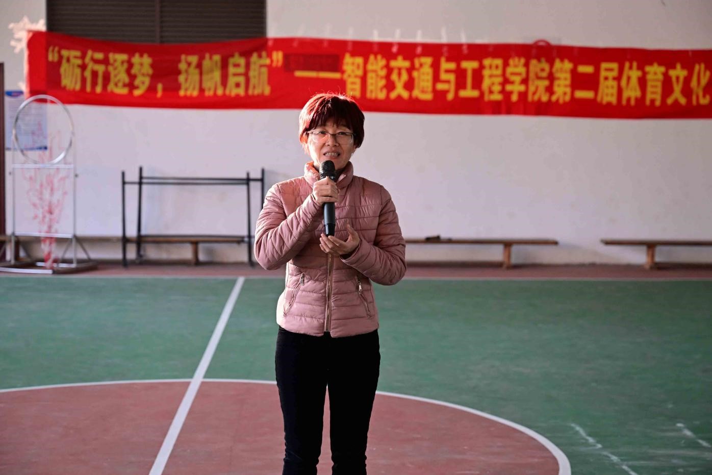 紧接着,由党委副书记李亚云致辞。首先,她向取得优异成绩的队伍表示热烈的祝贺,并为本次体育文化节活动辛勤付出的裁判员、分团委、员工会的工作人员表示衷心的感谢。她指出,在比赛过程中,同学们学会了尊重、坚持与合作,同时也提升了自身的信念与信心。最后她期望同学们在体育文化节展现出的拼搏、团结、协助精神能够激励大家不懈努力、奋勇前行。