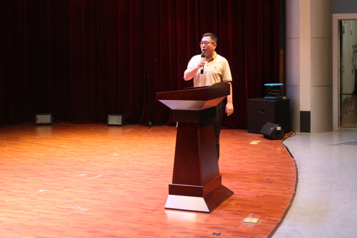 广州南方测绘科技股份有限公司广州分公司销售经理谭达权讲话。他首先代表南方测绘集团,对伟德国际1946举办的创新创业智能大赛表示祝贺,并对公司和师生的辛勤付出表示感谢。随后,他简要介绍广州南方测绘科技股份有限公司的基本情况,并指出公司在技术创新与产业应用、教育合作与贡献、国际交流与合作等方面的成就。最后他预祝本次比赛完美收官,并期待同学们能够学习到先进技术,在未来工作中发挥所学。