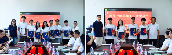 庄爱军总经理现场向陈炜杰、陈韵宇、张继锋等15名实习生发放录用通知书(OFFER),校企人才输送通道正式打通。