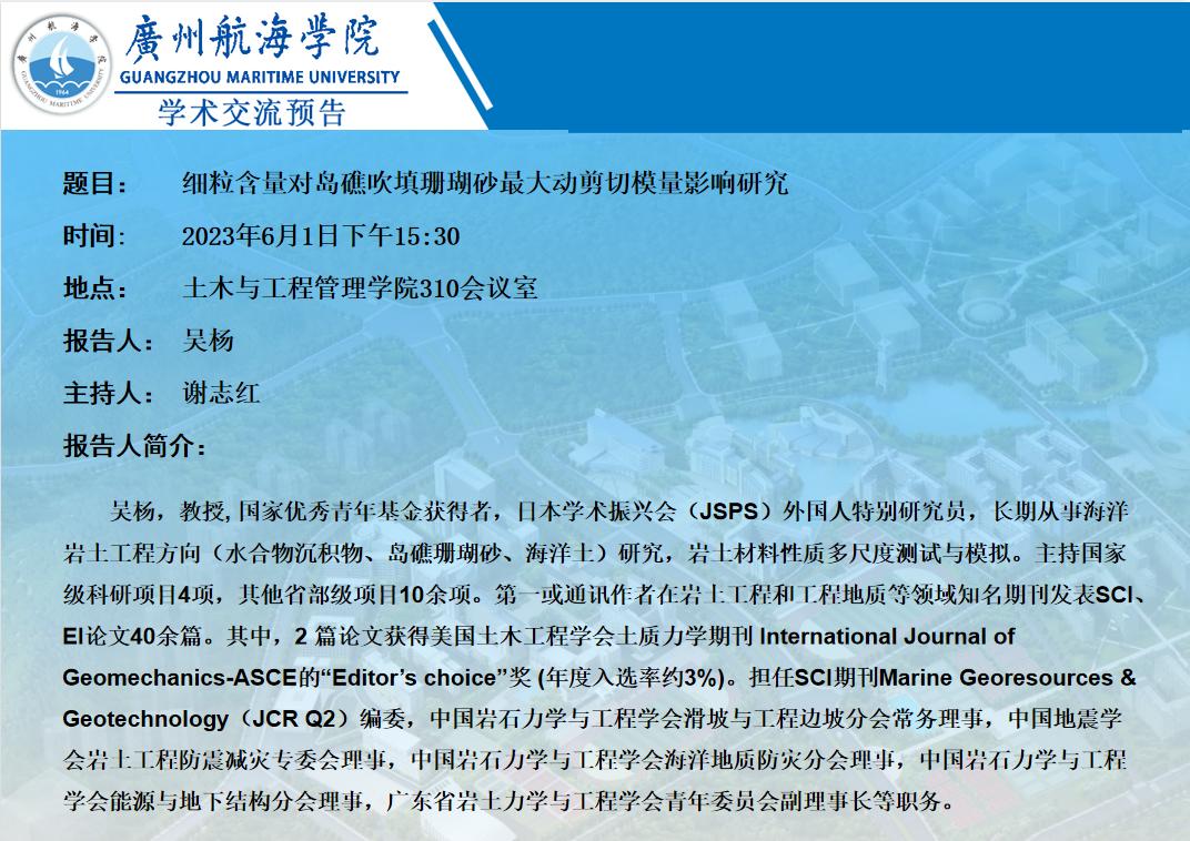 上一条:曾俊杰教授学术预告:FRP增强UHPC海工结构研发及应用 下一条:3D打印的再生石膏材料制备与性能提升技术--周双喜教授学术讲座